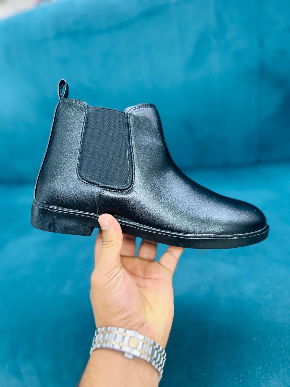 Classic black Chelsea ankle boots featuring a minimalist design, flexible elastic sides, and a sturdy sole. Perfect for office wear, evening outings, and everyday elegance.
