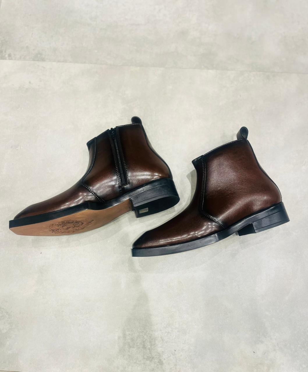 Stylish Brown Chelsea ankle boots made with a premium leather-finish upper and elastic side panels for easy slip-on wear. Designed with a durable anti-slip sole and comfortable fit, suitable for office wear, casual outings, and party use.